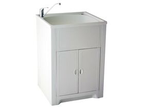 Milena Contour Laundry Trough & Cabinet 45L Stainless Steel Bowl Polymer Cabinet White